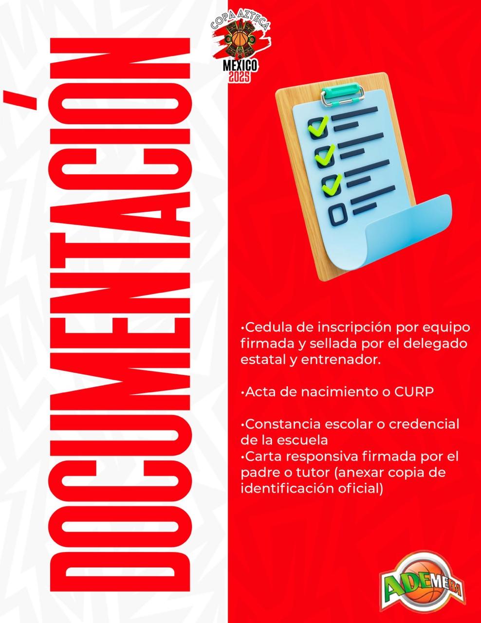 - Cédula de inscripción por equipo firmada y sellada por el delegado estatal y entrenador.